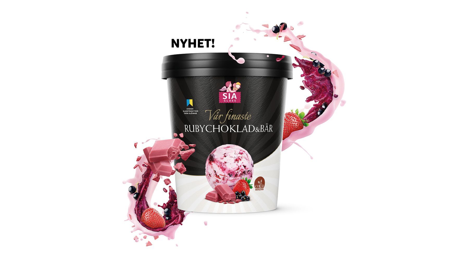 SIA Glass finglassortiment Vår Finaste får en ny medlem – RubyChoklad & Bär. Nyheten görs med gräddglass av färsk grädde med krispiga bitar av Rubychoklad och smakrik svarta vinbär- och jordgubbssylt – samt mycket kärlek och omsorg om råvarorna.