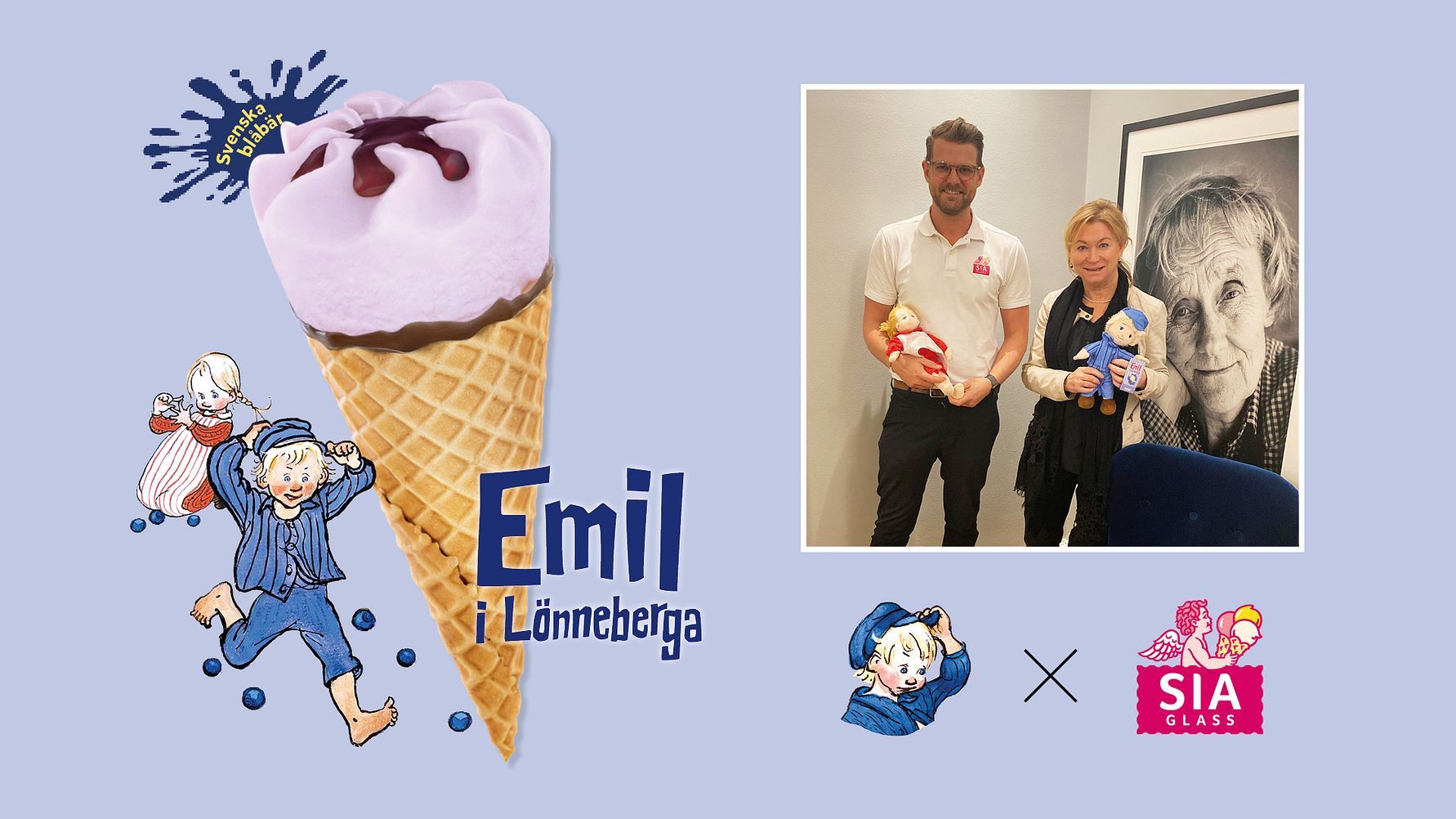 – Det känns spännande och helt naturligt att samarbeta med The Astrid Lindgren Company som så väl förvaltar arvet från en av Sveriges viktigaste författare och en värld som vi gärna är en del av – Emil i Lönneberga är en fin representant för vår värdering att barn har rätt att få vara just barn, så den här nya glasstruten känner vi starkt för, säger Dan Bengtsson, marknadschef SIA Glass.