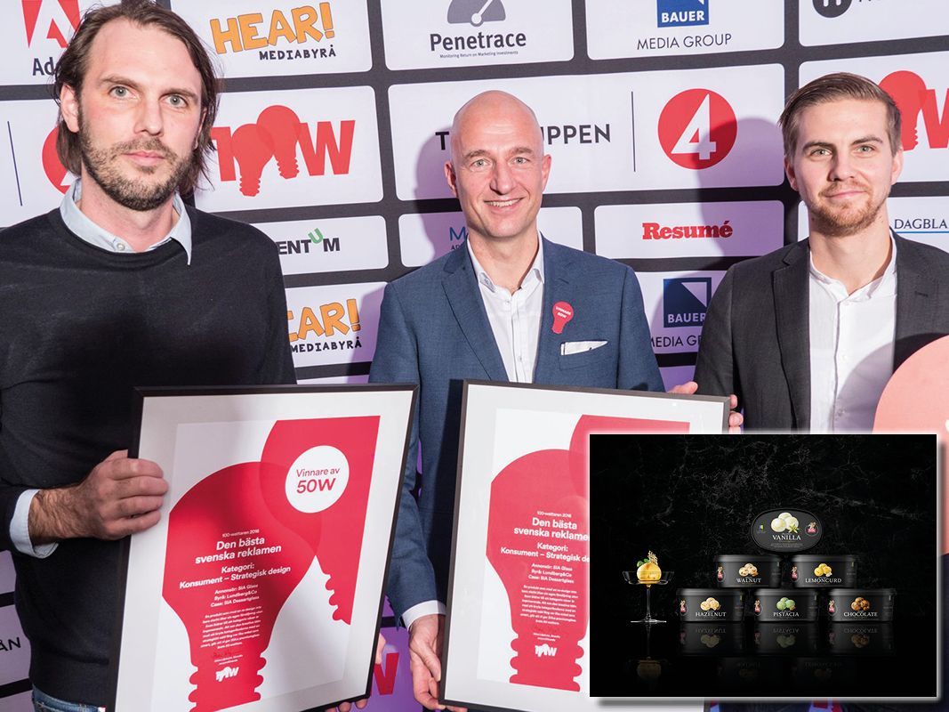 SIA Glass lyxiga dessertglass i de stilrena, svarta förpackningarna tog brons i klassen Strategisk design när priserna delades ut den 25 november på Rival i Stockholm. Förpackningsdesignen har tagits fram tillsammans med reklambyrån Lundberg & Co i Gävle och lanserades i februari i år. – Utmaningen var att få fler att upptäcka SIA Glass godaste glass. Med en av marknadens finaste produkter gäller det att ha en design som blixtsnabbt kommunicerar det till konsumenten, säger Nils Vahlund som är planner på Lundberg & Co.
