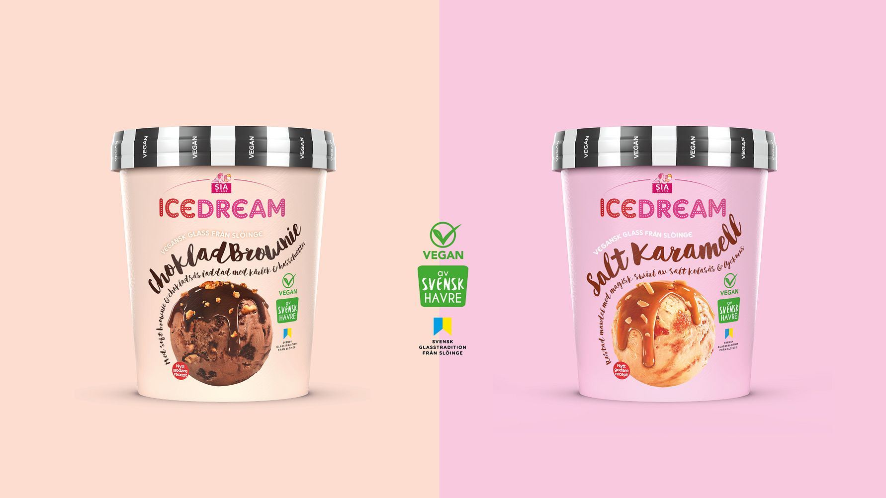 Nytt år, ny glass-säsong och SIA Glass förstärker sortimentet av vegansk glass, som presenteras under varumärket Ice Dream. Glassfrysar i svenska livsmedelsbutiker fylls därför i vår med två veganska drömsmaker – Ice Dream ChokladBrownie, med soft brownie och chokladsås, laddad med kärlek och hasselnötter och Ice Dream SaltKaramell, rostad mandel med magisk swirl av salt kolasås och lyckorus. Båda smakerna görs med svensk havre, och kommer i fina halvlitersförpackningar som fått en uppdaterad design.