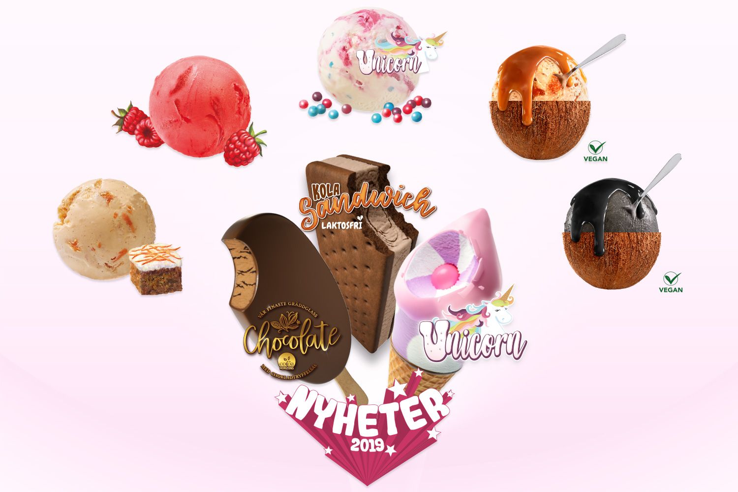 SIA Glass kommer med härligt färgsprakande nyheter från glassfabriken i Slöinge. – Visst behöver vi mer glädje, fantasi och glittriga regnbågar i världen? Glassvärlden får en äkta Unicorn med färg och smak från naturen, en lyxig Chocolate till finsmakarna och en Morotskaka till fikafantasterna. Och det finns fler magiska smaknyheter att se fram emot i vår, säger Stefan Carlsson på SIA Glass.